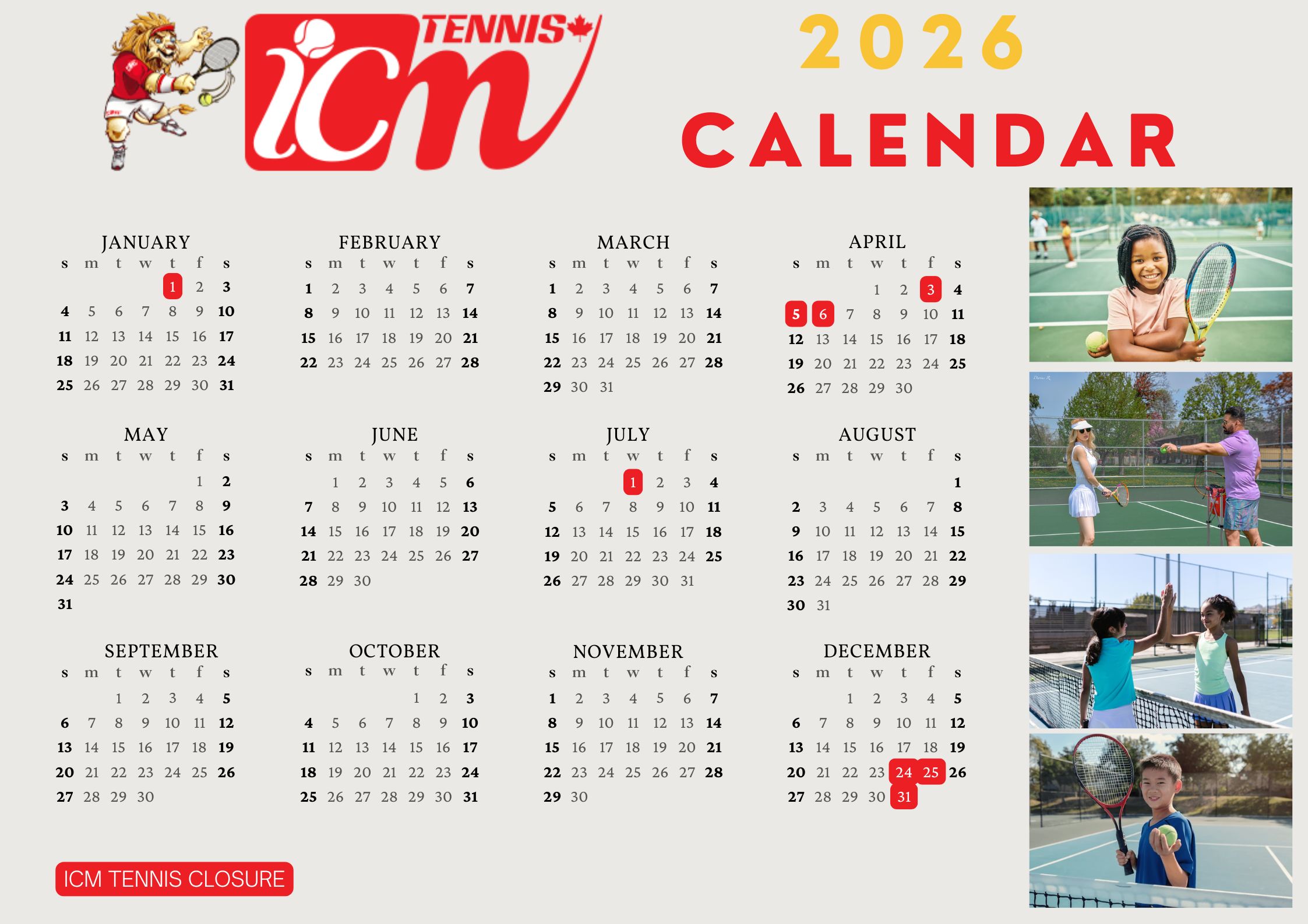 ICM TENNIS CALENDAR